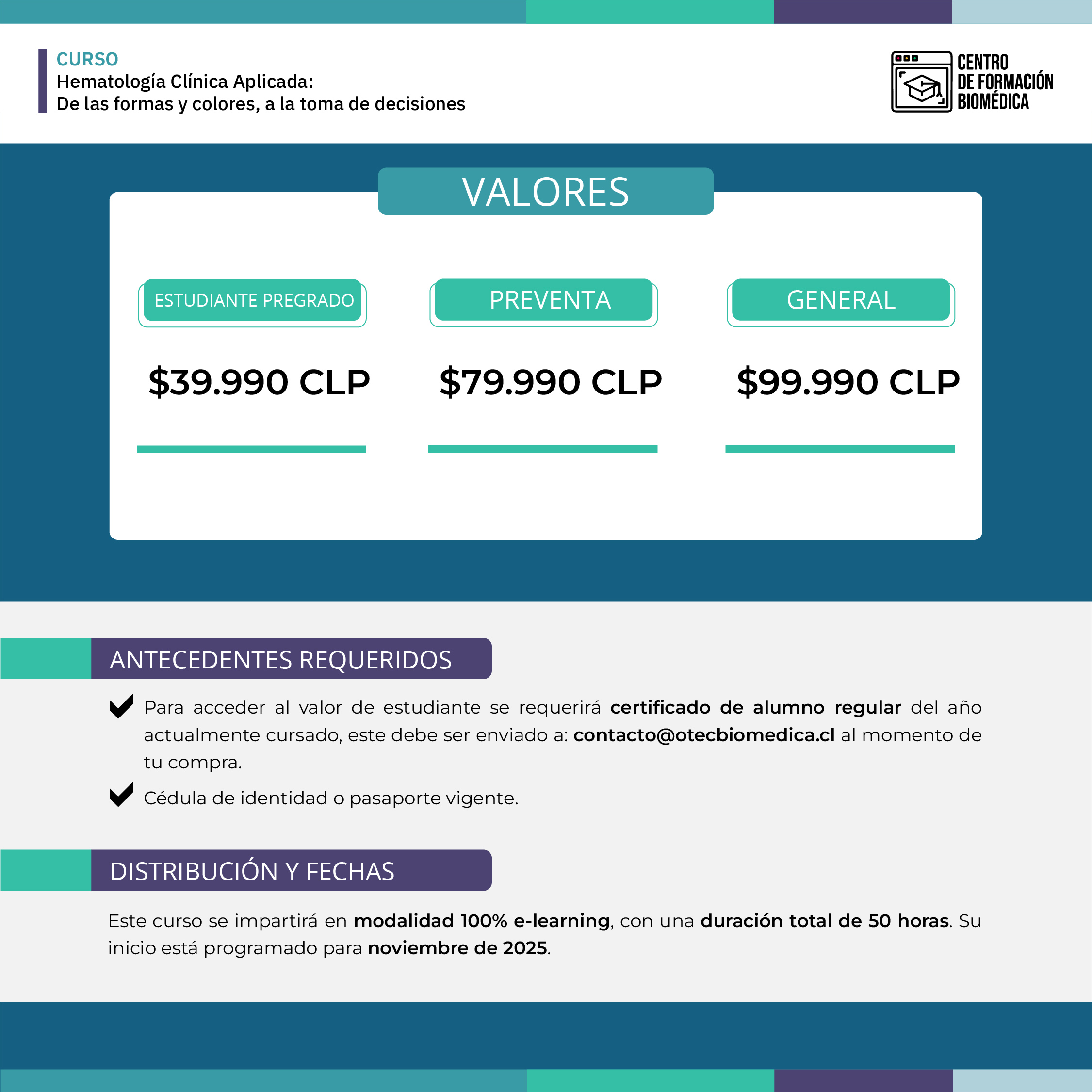 El Centro de Formación Biomédica se reserva el derecho de suspender la apertura del programa si no cuenta con el mínimo de estudiantes requeridos.